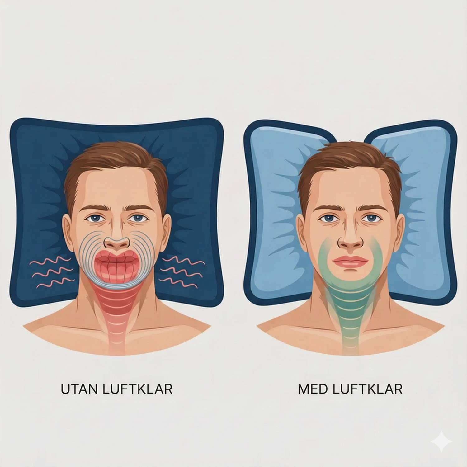 De flesta kuddar trycker huvudet framåt, vilket skapar den perfekta positionen för att dra ihop luftvägarna. LuftKlar ger riktad lindring – precis där andra misslyckas.
