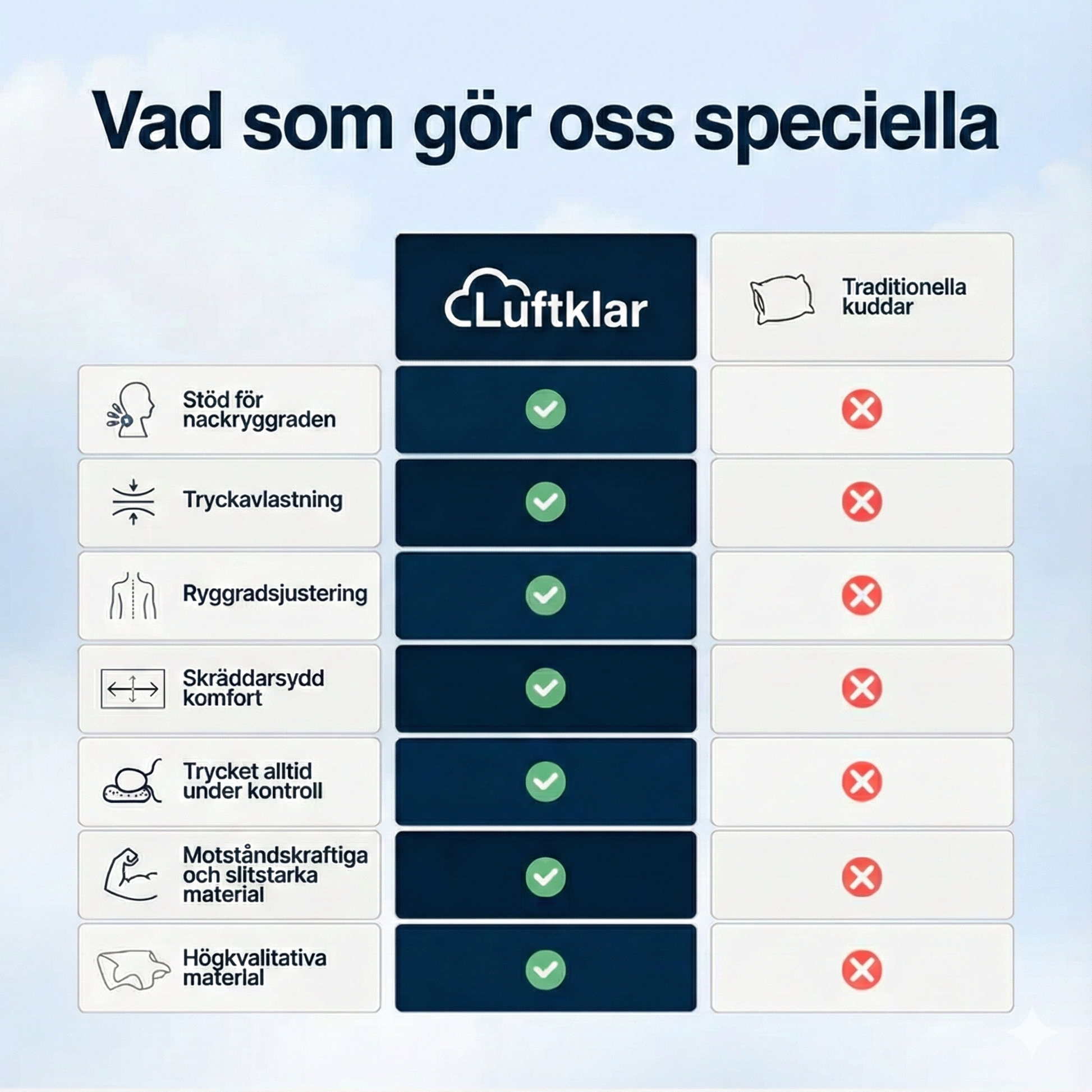 Vad skiljer LuftKlar från andra kuddar?